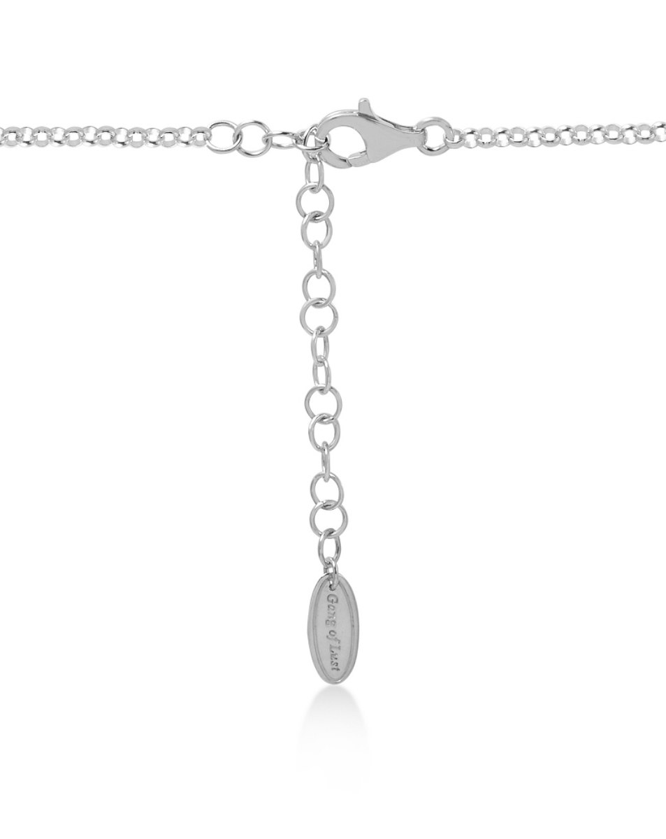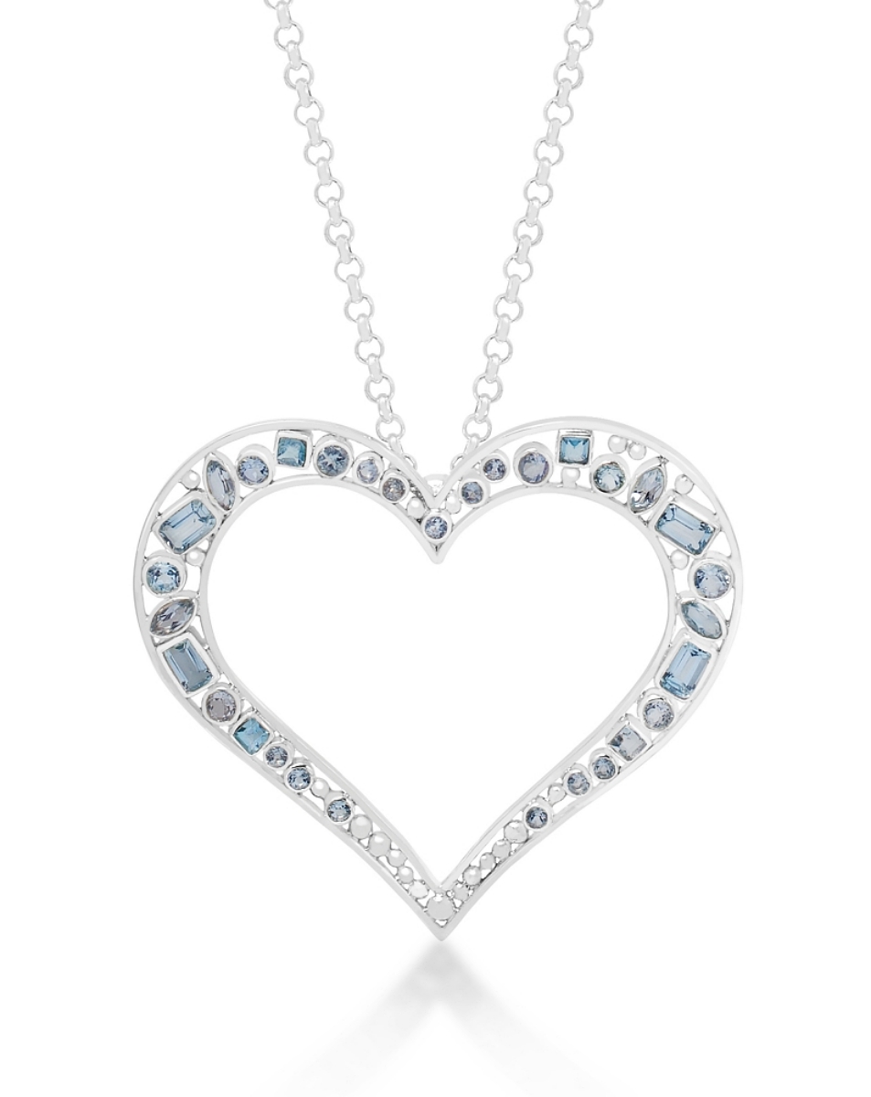 This statement heart charm necklace casted from sterling silver is encrusted with blue Topaz dotted along the rim. Designed with a longer slender chain with a lobster clasp to adjust the length. Wear yours solo or stack with our other key pieces.