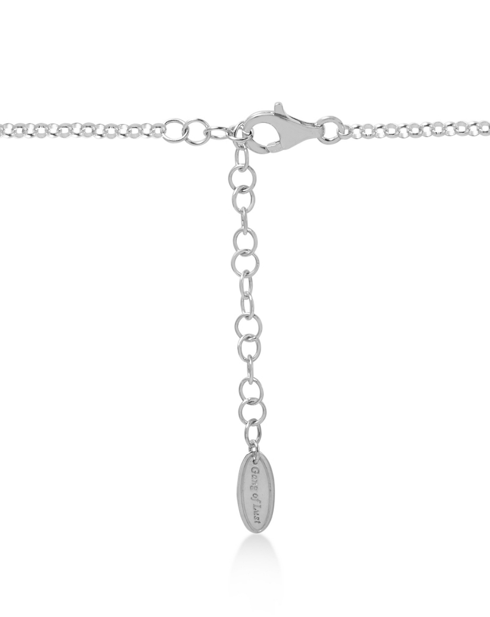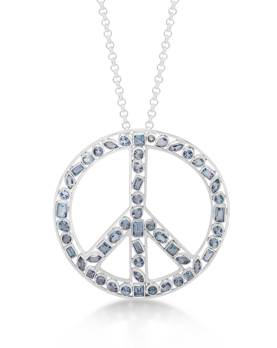 This statement peace charm necklace casted from sterling silver is encrusted with blue Topaz stones dotted along the rim. Designed with a longer slender chain with a lobster clasp to adjust the length. Wear yours solo or stack with our other key pieces.